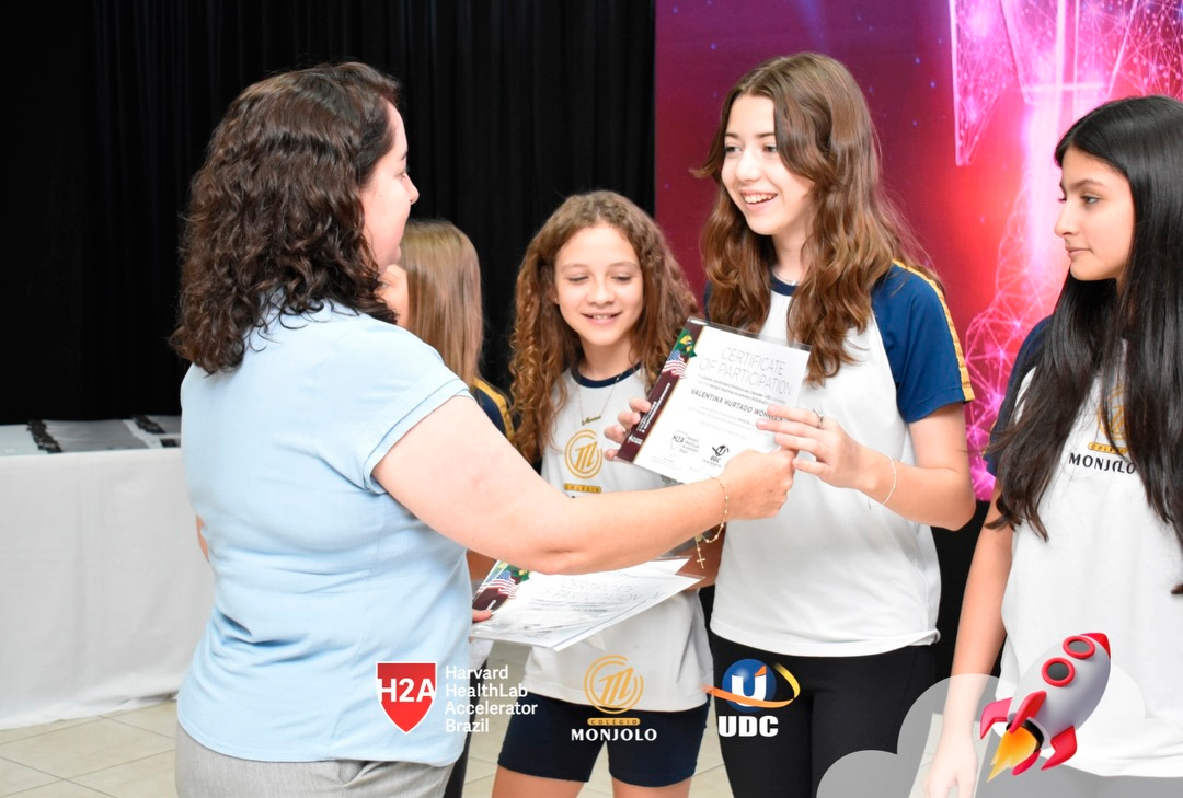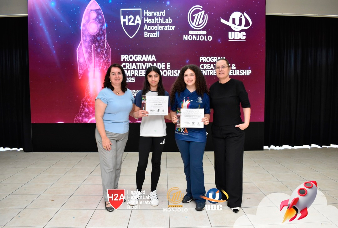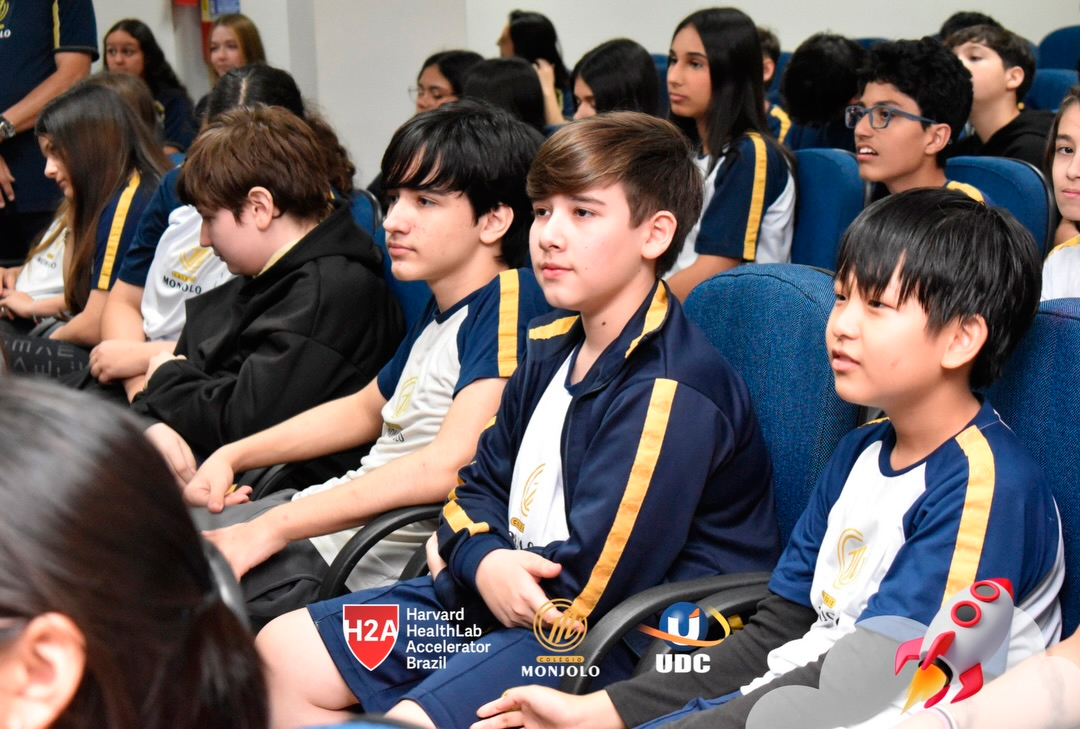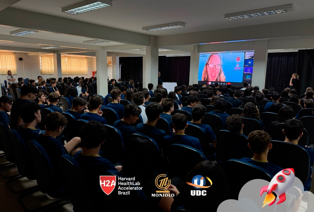 A solenidade teve a abertura da Diretora Geral do Colégio e Reitora da UDC, Profª Rosicler Hauagge do Prado, e do Pró-reitor Prof. Dr. Fábio Prado, reforçando a importância de investir em projetos que desenvolvem autonomia e visão global. Contamos também com a participação especial do Prof. Sam Magee, diretor do programa Harvard HealthLab Accelerator, e de Meg Murphy, Redatora Sênior de Comunicações Estratégicas da Harvard T.H. Chan School of Public Health, que fortaleceram esse diálogo internacional que tanto inspira nossos alunos.