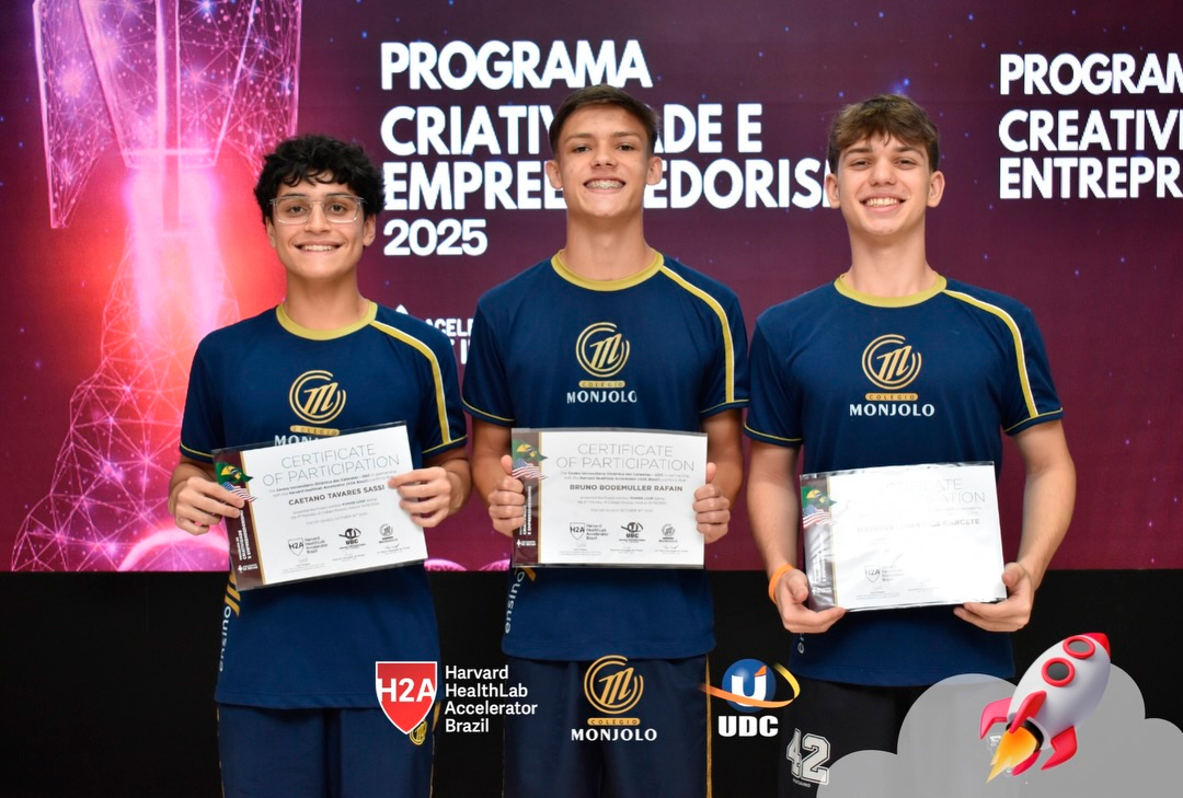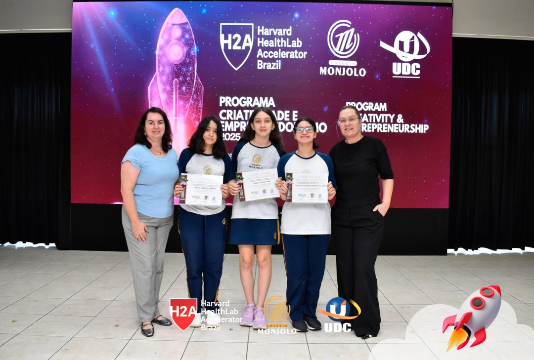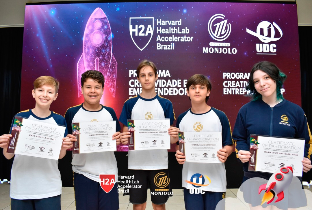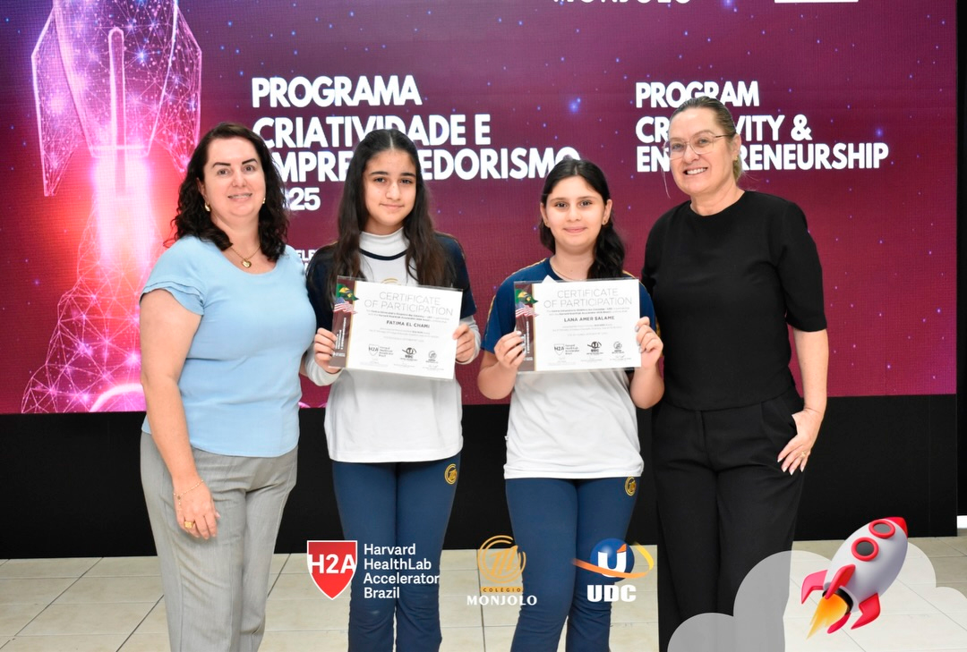 A solenidade teve a abertura da Diretora Geral do Colégio e Reitora da UDC, Profª Rosicler Hauagge do Prado, e do Pró-reitor Prof. Dr. Fábio Prado, reforçando a importância de investir em projetos que desenvolvem autonomia e visão global. Contamos também com a participação especial do Prof. Sam Magee, diretor do programa Harvard HealthLab Accelerator, e de Meg Murphy, Redatora Sênior de Comunicações Estratégicas da Harvard T.H. Chan School of Public Health, que fortaleceram esse diálogo internacional que tanto inspira nossos alunos.
