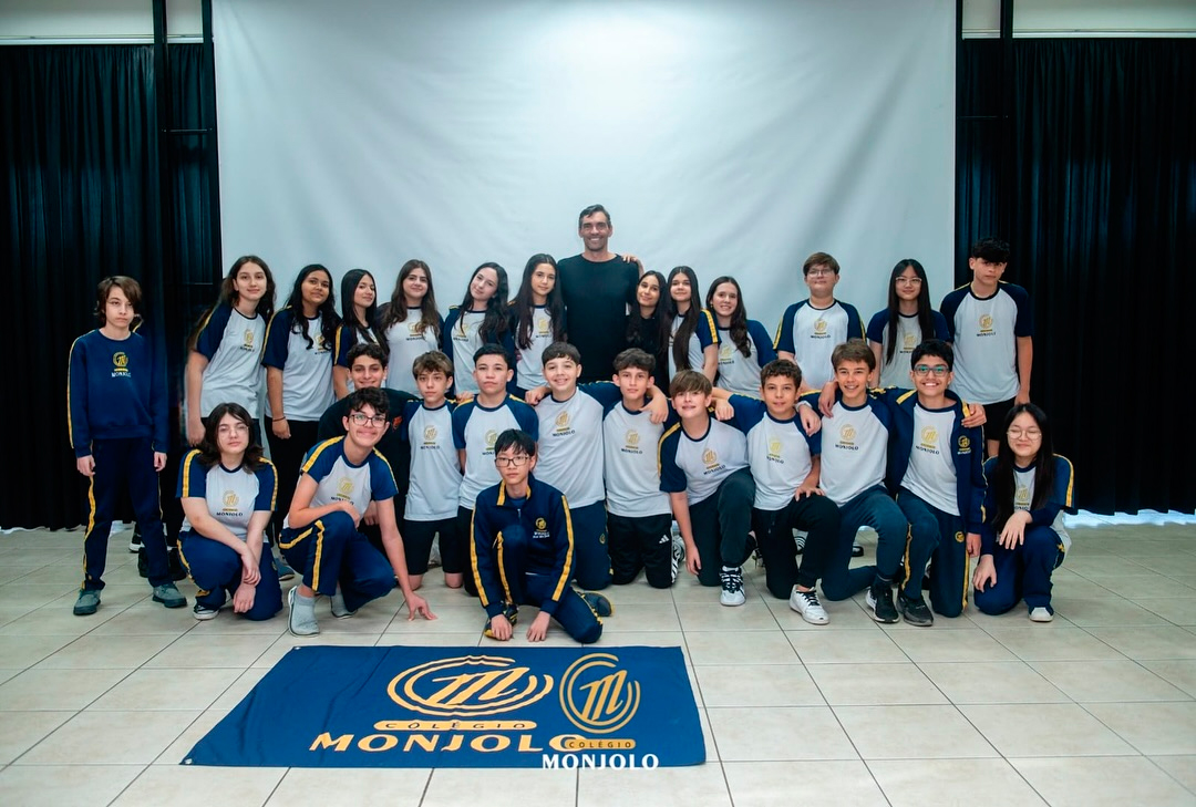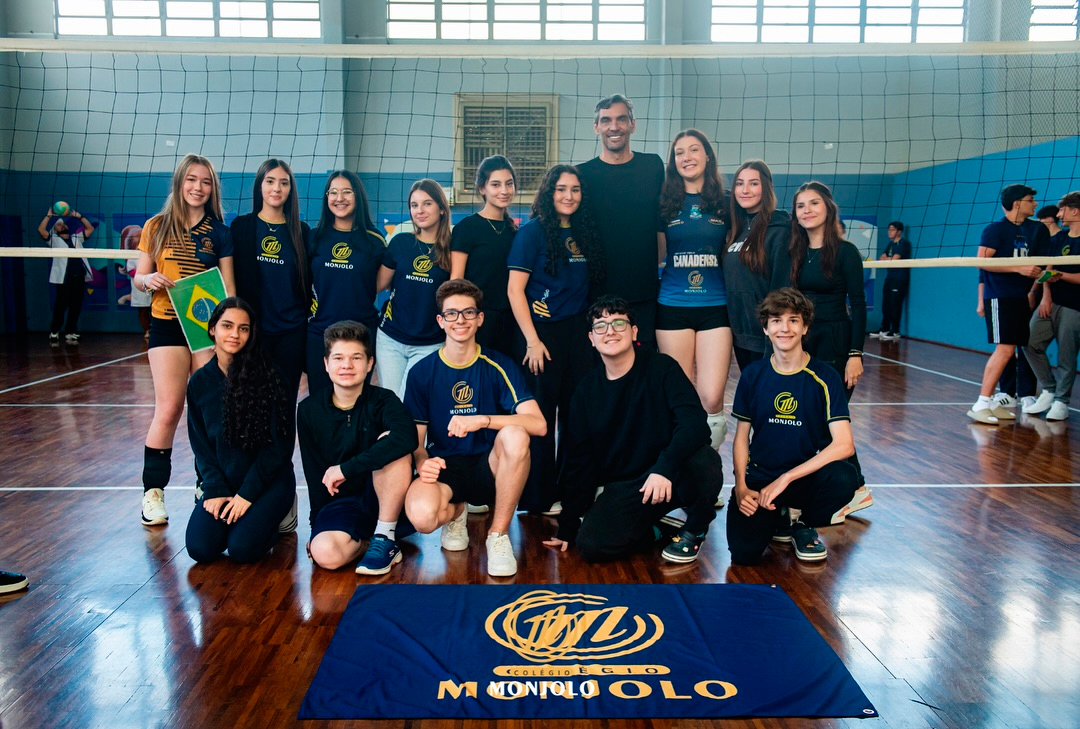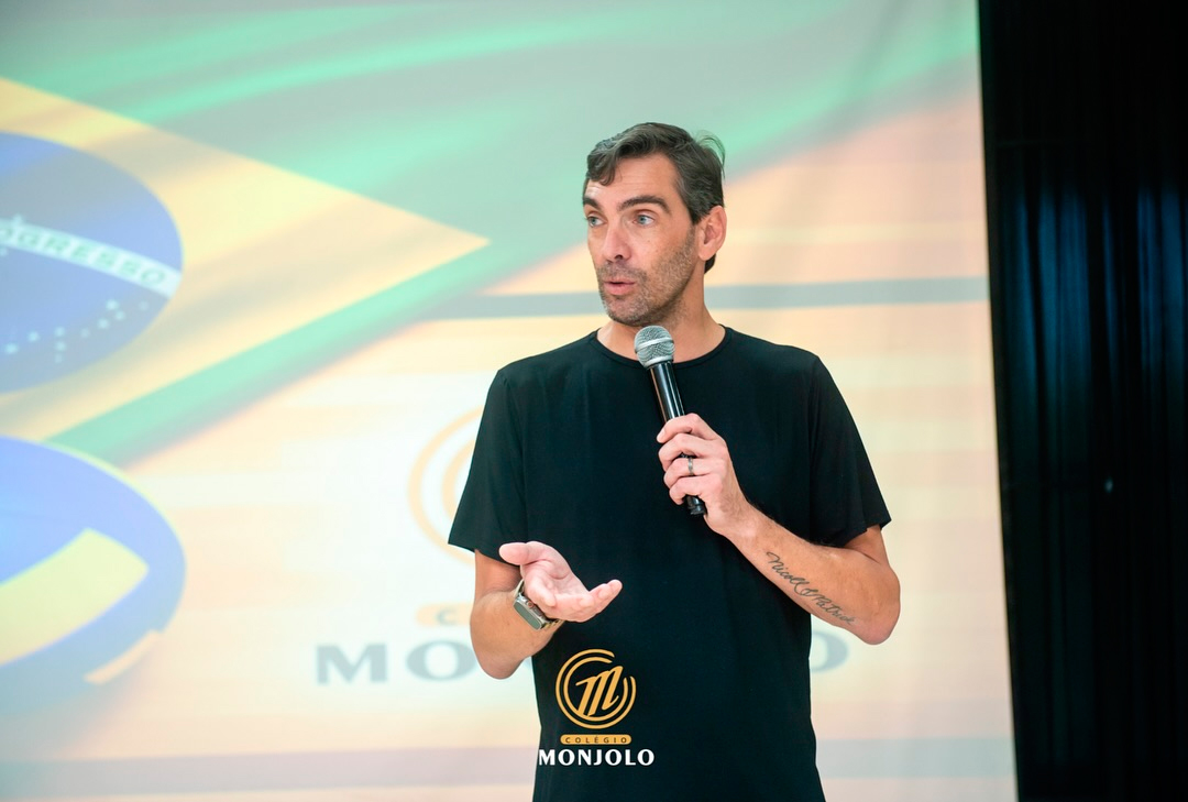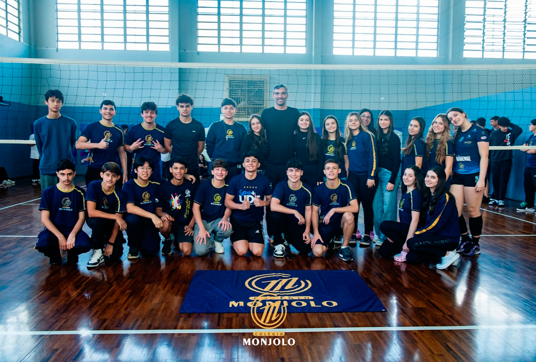 O Colégio Monjolo teve a honra de receber o ex-jogador Giba, um dos maiores ídolos do vôlei brasileiro e mundial. Medalhista olímpico e tricampeão mundial, Giba inspirou nossos alunos com uma palestra de histórias, aprendizados de vida e mensagens sobre determinação, foco e superação.