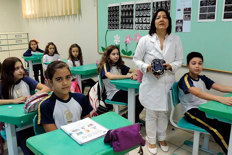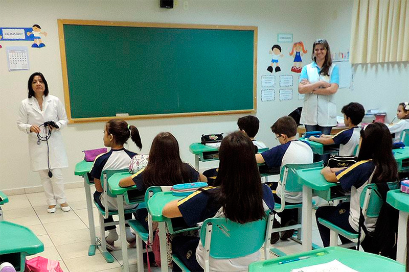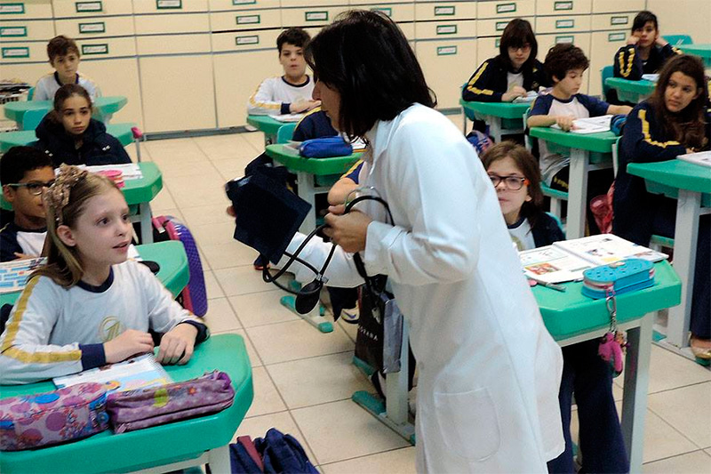 Os alunos do 5º Ano A e B, das professoras Sabrina e Simonelli, tiveram uma aula especial de Ciências com a Enfermeira Dirce.
