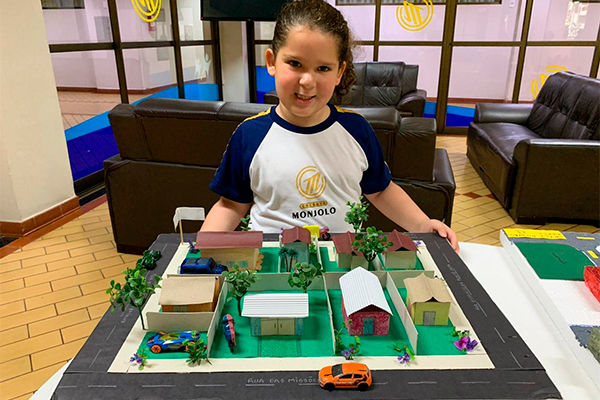 Para isso, precisaram reconhecer alguns tipos de construções e tiveram a oportunidade de mostrar, na maquete, aquelas que já conheciam e as que aprenderam nesse processo.