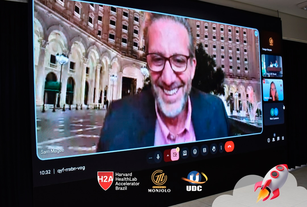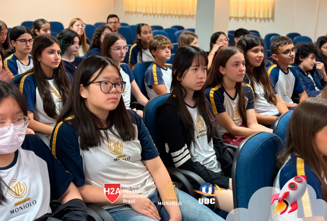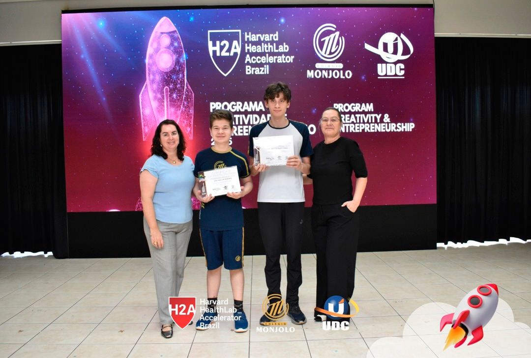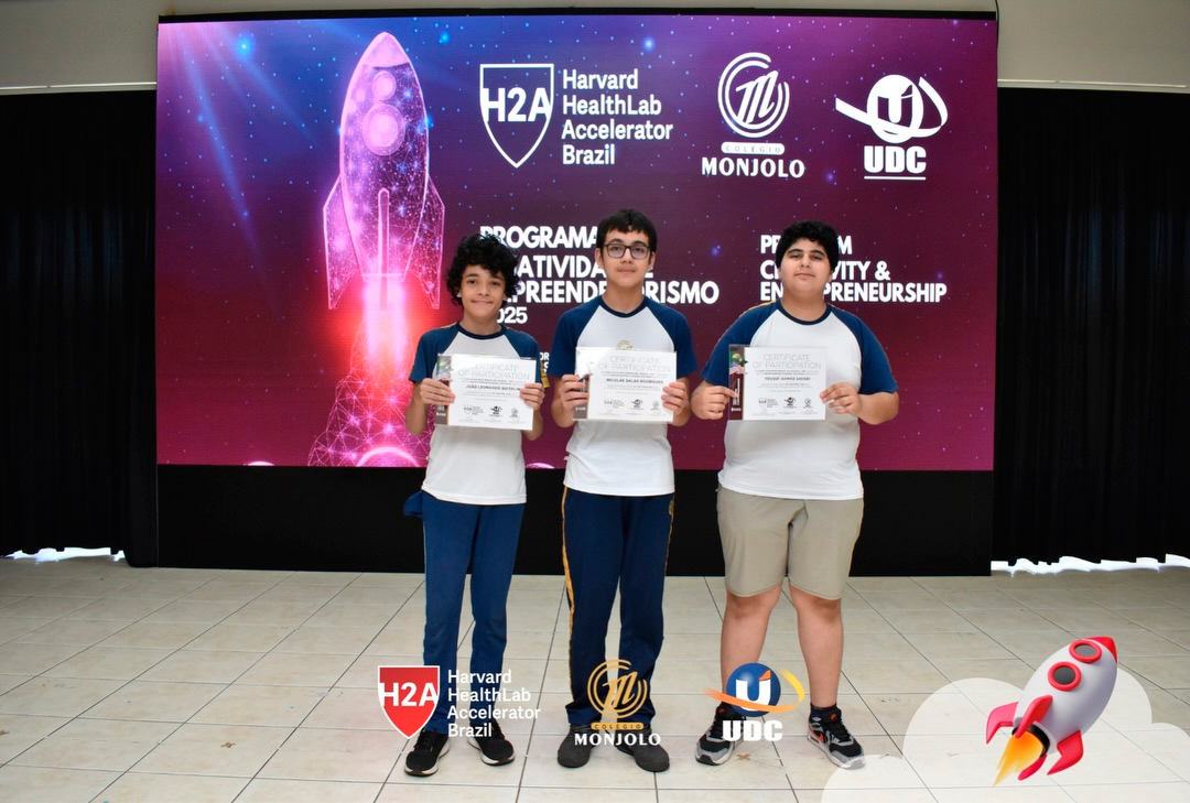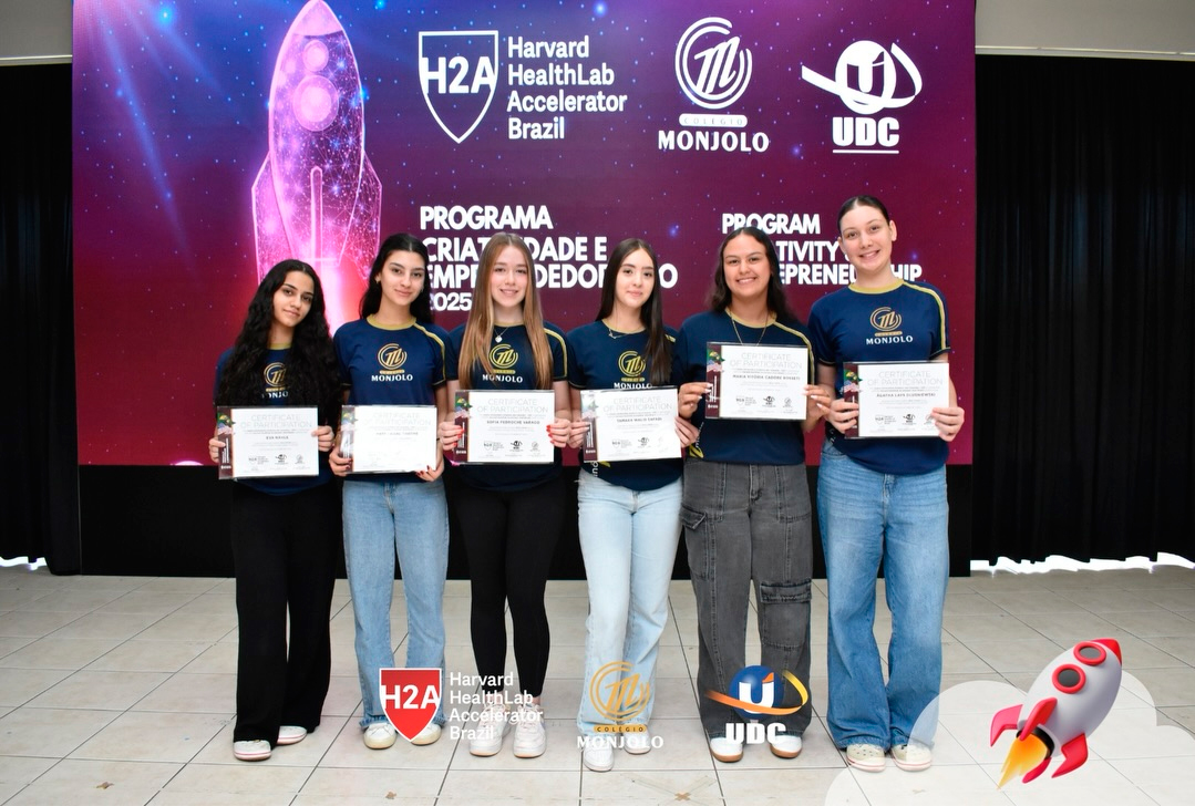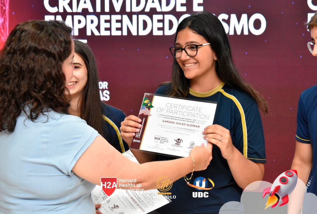 A solenidade teve a abertura da Diretora Geral do Colégio e Reitora da UDC, Profª Rosicler Hauagge do Prado, e do Pró-reitor Prof. Dr. Fábio Prado, reforçando a importância de investir em projetos que desenvolvem autonomia e visão global. Contamos também com a participação especial do Prof. Sam Magee, diretor do programa Harvard HealthLab Accelerator, e de Meg Murphy, Redatora Sênior de Comunicações Estratégicas da Harvard T.H. Chan School of Public Health, que fortaleceram esse diálogo internacional que tanto inspira nossos alunos.
