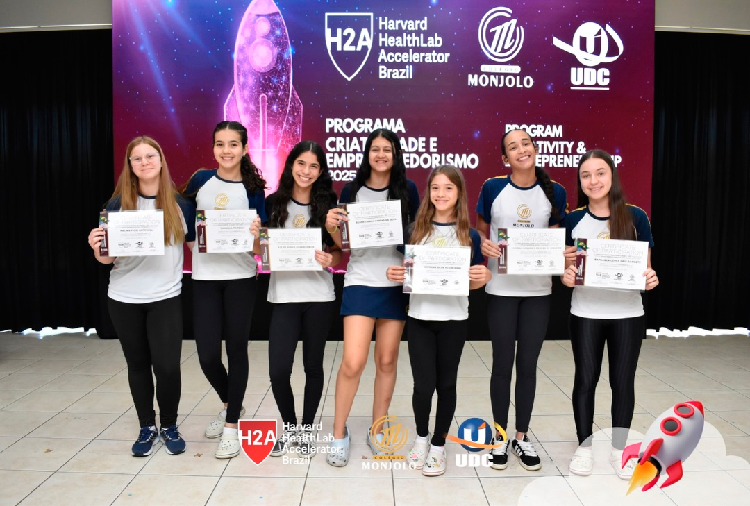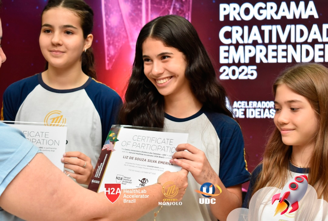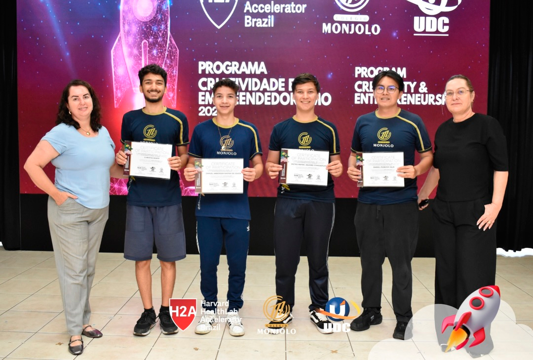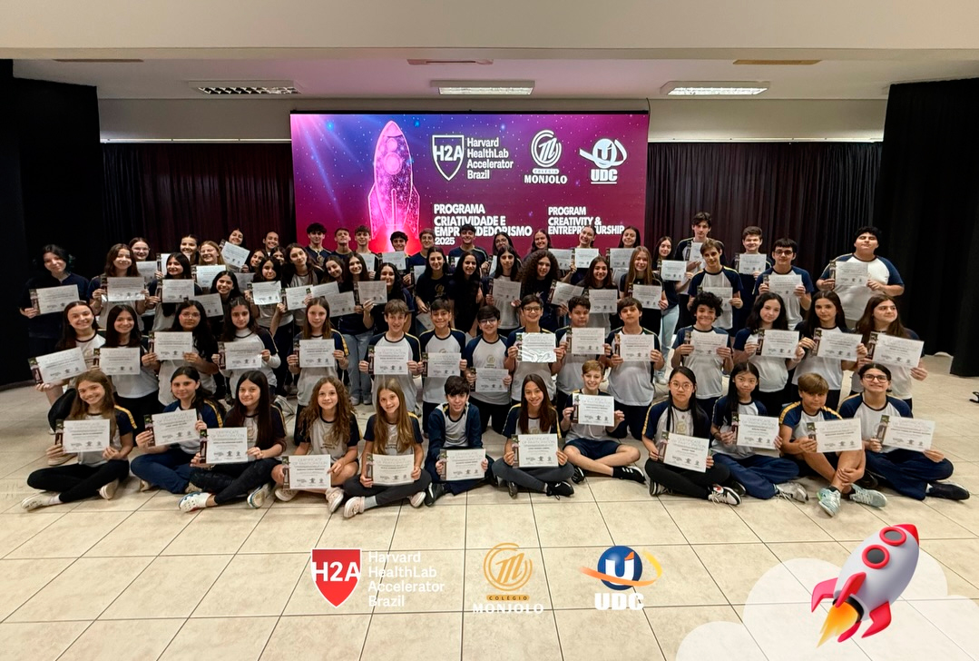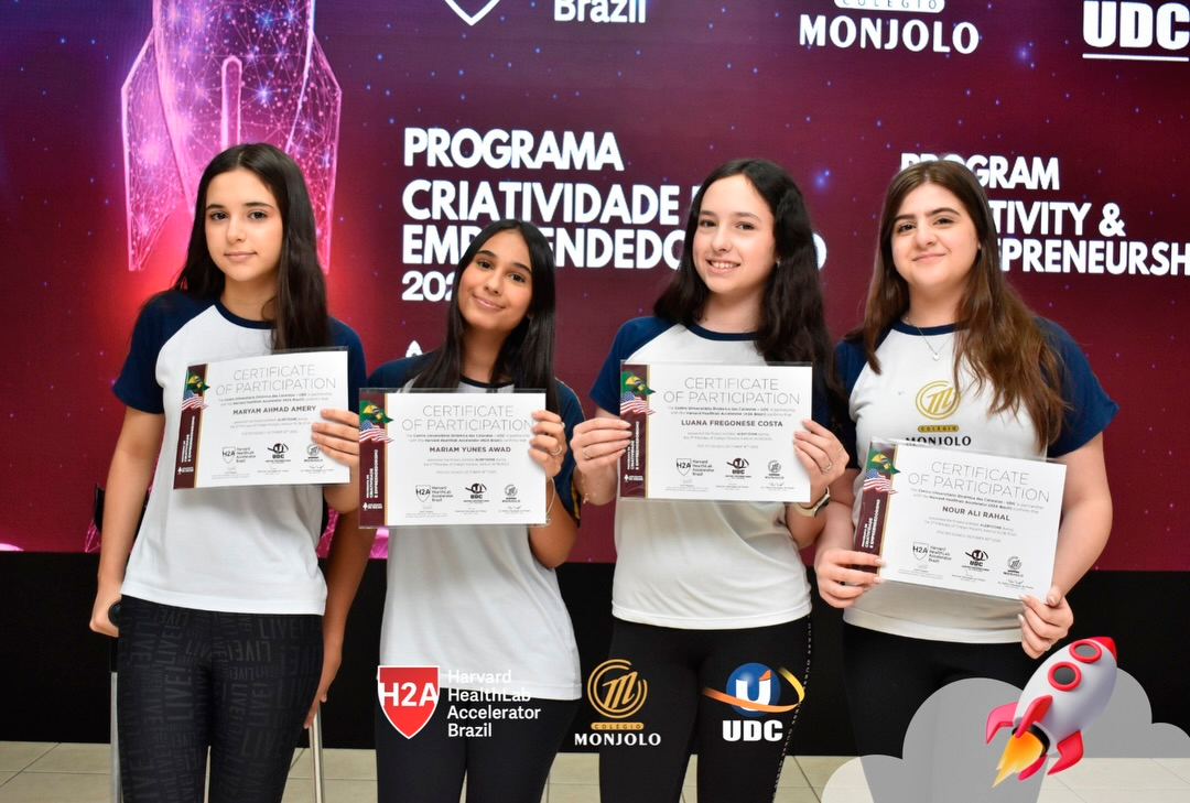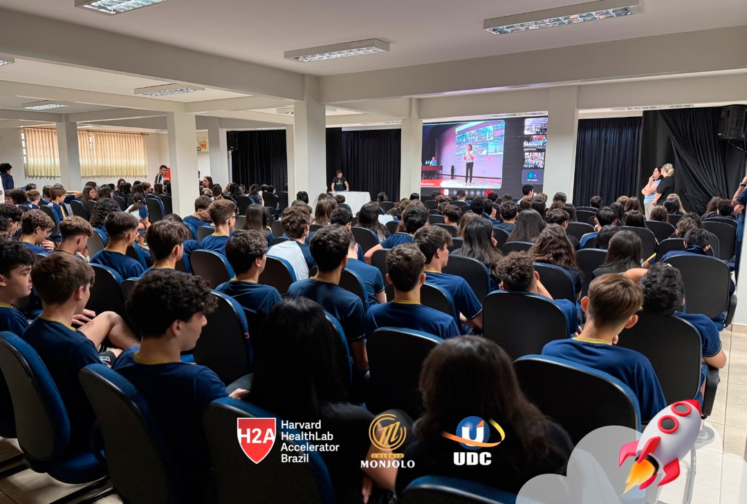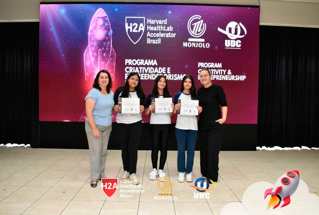 A solenidade teve a abertura da Diretora Geral do Colégio e Reitora da UDC, Profª Rosicler Hauagge do Prado, e do Pró-reitor Prof. Dr. Fábio Prado, reforçando a importância de investir em projetos que desenvolvem autonomia e visão global. Contamos também com a participação especial do Prof. Sam Magee, diretor do programa Harvard HealthLab Accelerator, e de Meg Murphy, Redatora Sênior de Comunicações Estratégicas da Harvard T.H. Chan School of Public Health, que fortaleceram esse diálogo internacional que tanto inspira nossos alunos.