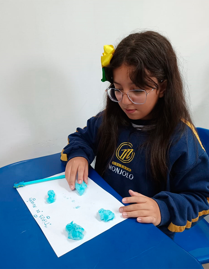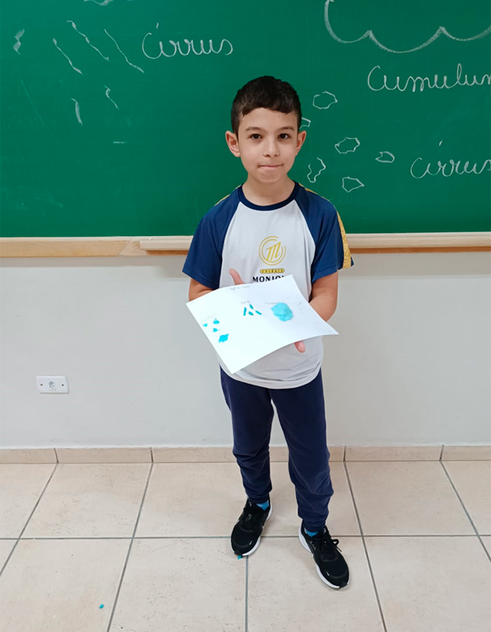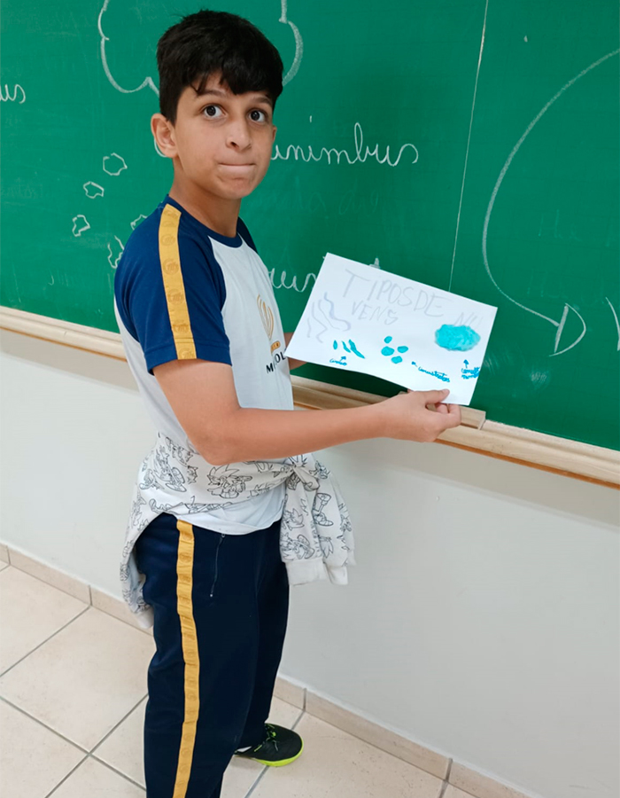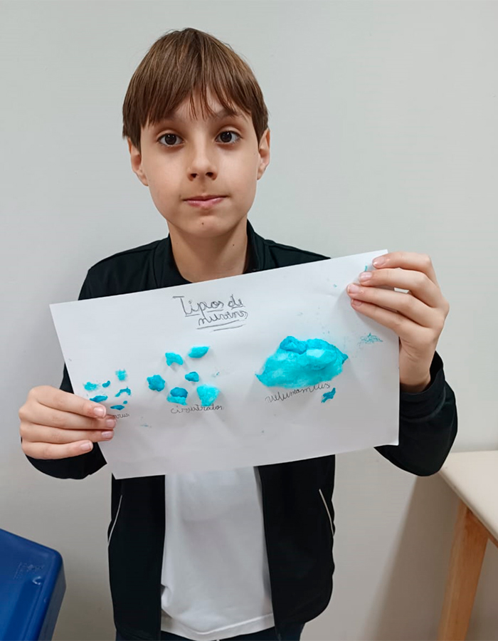 Por meio do lúdico os alunos do sextos anos na disciplina de Geografia realizaram e puderam vivenciar os formatos das nuvens com algodão doce concretizando o aprendizado sobre os tipos de nuvem.